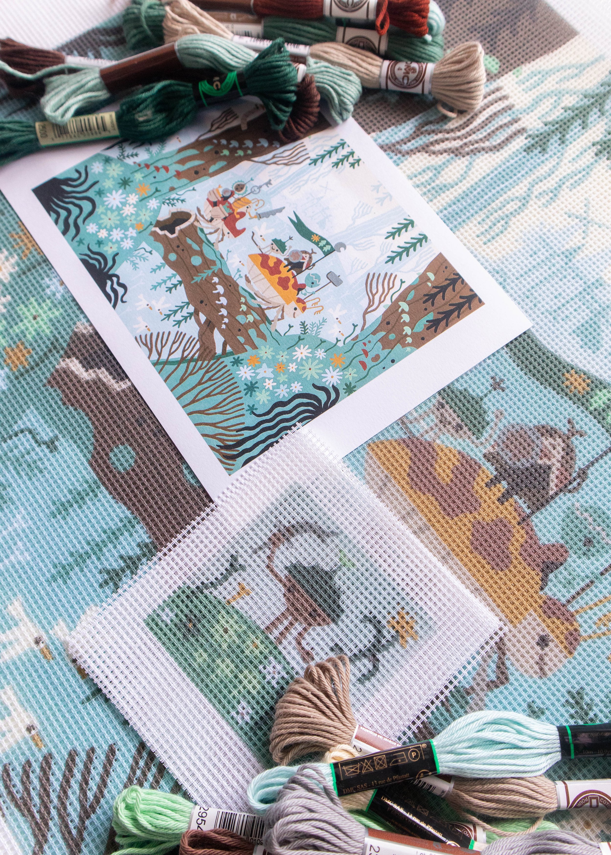 Ce kit un peu spécial a été conçu pour les amateurs.trices de DIY, car une fois brodée la toile pourra servir de matière première pour des projets textiles divers. Le visuel n’a pas de sens particulier, c’est pourquoi vous pourrez aisément découper dedans selon vos envies. Un vlog de la réalisation de notre pochette est en préparation.