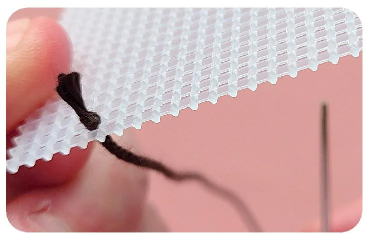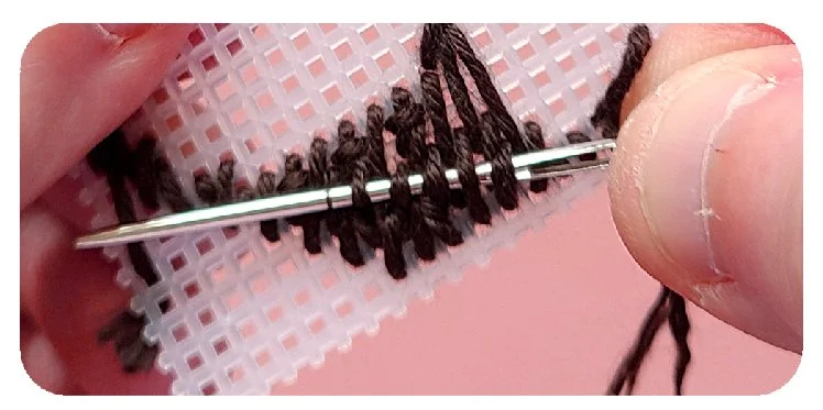 - Lorsque votre fil sera entièrement consommé, glissez-le sous quelques points à l’arrière de la toile et découpez l’extrémité qui dépasse. S’il vous en reste en quantité suffisante, conservez-le pour plus tard